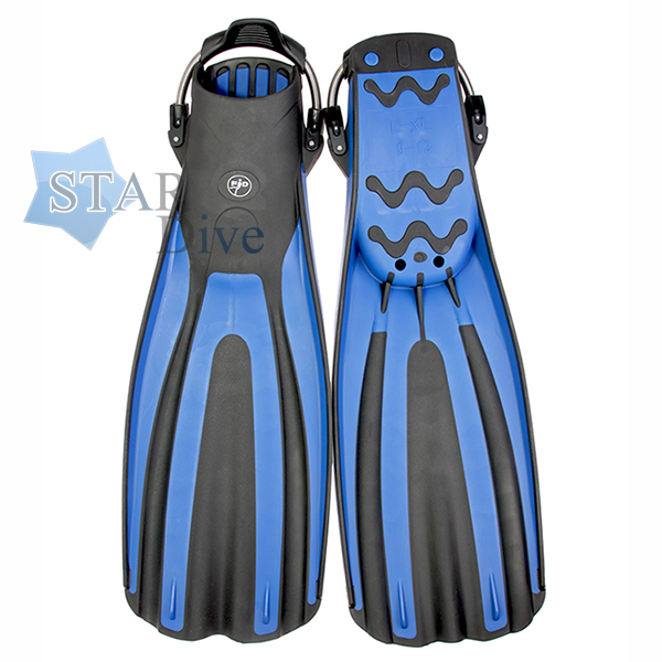 - Ласты комплектуются удобными пружинными ремешками без разъемных пластиковых пряжек, что делает механизм более надежным, при этом надевать и снимать ласты проще, чем модели с классическим ремешком. Особенно удобен такой ремешок для дайверов, использующих сухие гидрокостюмы или погружающихся в толстых перчатках, затрудняющих движения.