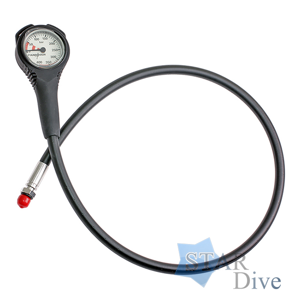 Корпус манометра FanDiver Compact выполнен из латуни и помещён в защитный корпус из эластичного пластика. Соединение шланга высокого давления и манометра имеет подвижное вокруг своей оси соединение. Шланг длиной 80 см, резьба стандартная 7/16.