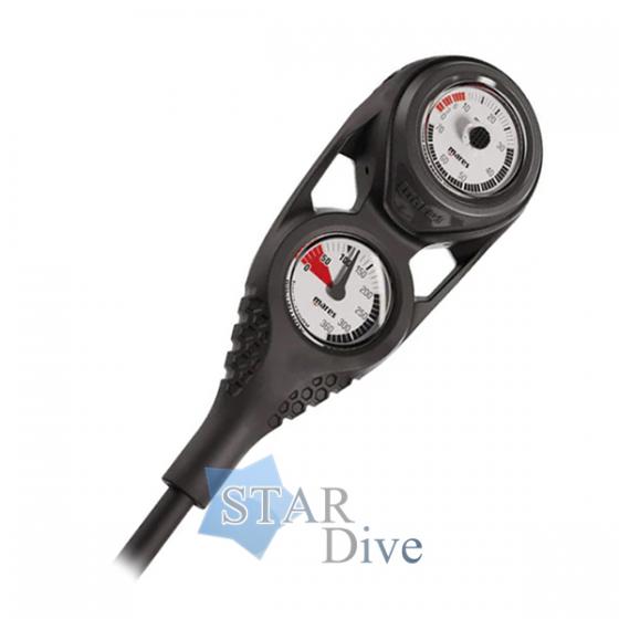 Состоящая из манометра и глубиномера, аналоговая консоль для дайвинга Mares Mission 2 чрезвычайно удобна в использовании. На ударопрочном корпусе из эластомерного технополимера имеются петли для крепления и эксплуатации консоли в подводном мире.